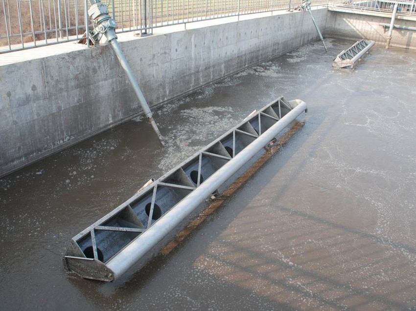 潷水器是間歇式活性污泥法處理污水的必配機(jī)械裝置。間歇式活性污泥法的污水處理機(jī)制與普通活性污泥法相同,其區(qū)別在于原污水不是順次流經(jīng)各個(gè)處理單元而是放流到單一反應(yīng)池內(nèi),按時(shí)間順序?qū)崿F(xiàn)不同目的的操作,其基本操作程序由進(jìn)水、反應(yīng)、沉淀、出水和待機(jī)等五個(gè)基本過程組成。從污水流入開始到待機(jī)時(shí)間結(jié)束為一個(gè)周期。潷水器通過電控柜內(nèi)的時(shí)間繼電器和螺旋推進(jìn)裝置內(nèi)的引程開關(guān),實(shí)現(xiàn)定時(shí)、定量排放達(dá)標(biāo)處理水,從而使SBR池實(shí)現(xiàn)連續(xù)處理污水的最終目的。